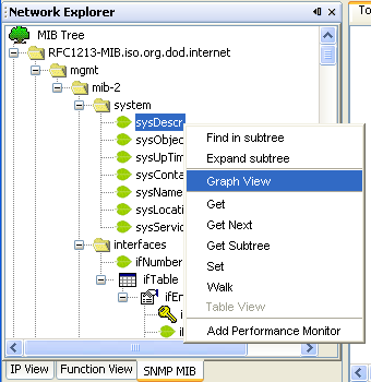 | SNMP Info | If node supports SNMP, it will query SNMP agent to get values and show them in a new dialog window. This menu can be customized by modifying the $INSTALL_DIR/client/config/snmpinfo.conf configure file. You can add or remove menu items. |