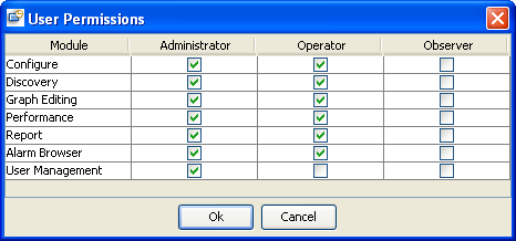 Each user is assigned one of the three privileges: admin, operator and observer. By default, admin privilege has all the permissions and observer group has minimum permissions. You can change their privileges in the “User Permissions” window.