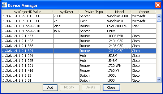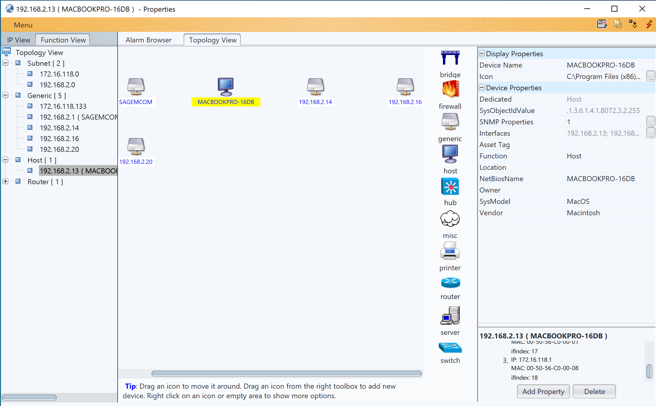 During network discovery, each discovered node will be assigned an appropriate icon. The type of icon is determined by the device’s value of SysModel property. If no matching icon is found, then a generic icon is used. For example, if a node is a Windows 10 machine, a win10 icon is assigned to it. So users can tell the device type easily.