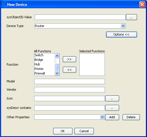 To add a new device to the current map, you just need to drag the icon from device panel to the map. When adding a new node, system will prompt user to enter some parameters and it then automatically does a discovery against the new node. If the node is not reachable, system will prompt user to discard it or not. If the map is subnet, the newly added node will be automatically connected to subnet.
