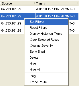 | Ignore Past SNMP Traps | If node has uncleared traps and the alarm browser is open, node’s color is red. You can use this menu item to change it back to normal color. |