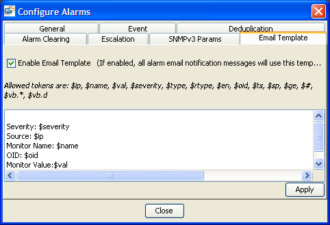 By default, alarm notification messages will be sent out as a text and HTML format, which usually are long messages. However, some services such as SMS restrict the length of messages. You can enable email template feature to use custom email message.